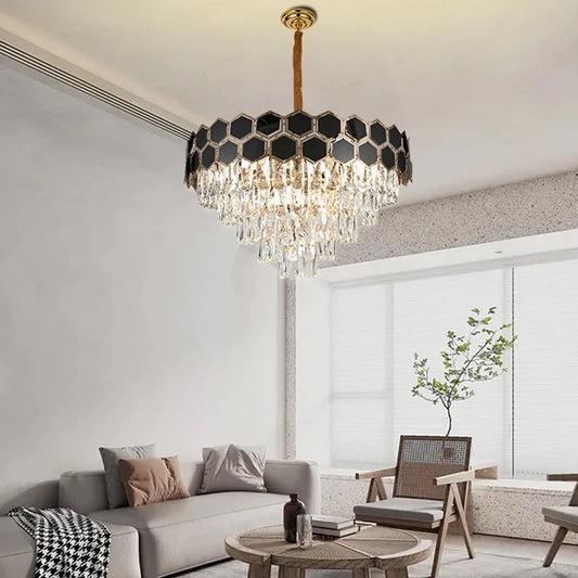 Triple Rounded Rings Golden Black Luxury Styled Chandlier Light