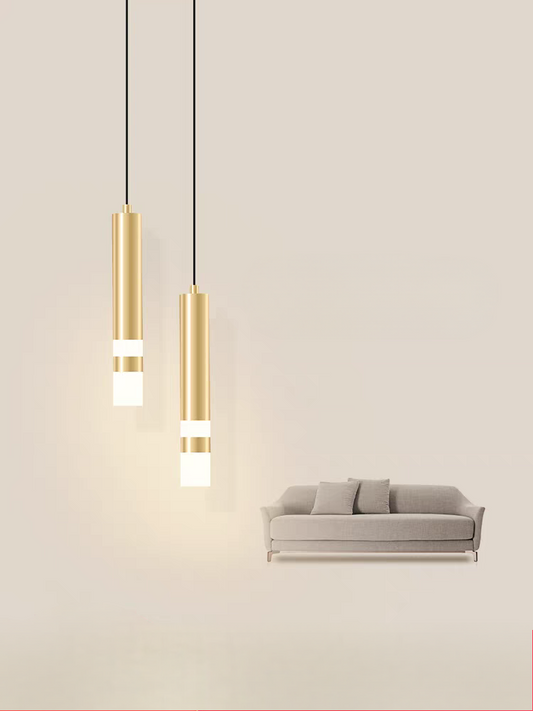 Straight Cylinderical Golden Led Hanging Single Pandent