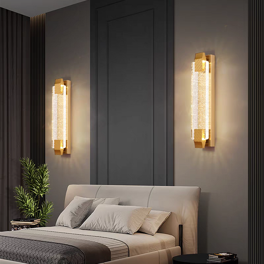 Led Straight Crystalled Golden Wall Light