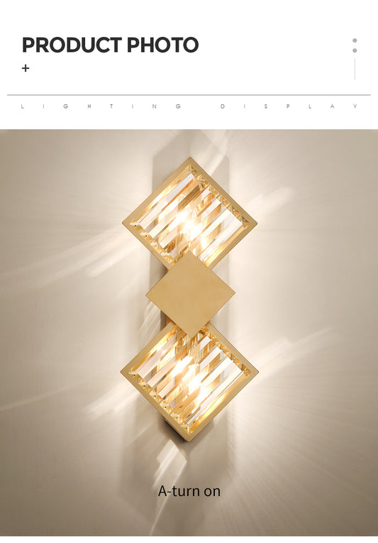 Crystal Golden Brass Double Wall Lamp